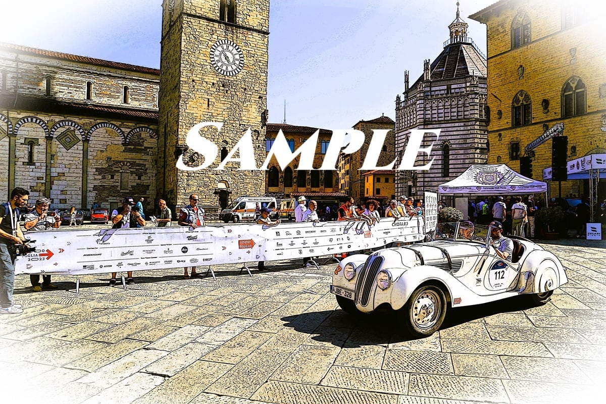 2023年6月に開催されたミッレミリアにおいて撮影したBMW328の写真をデジタル加工したものとなります。